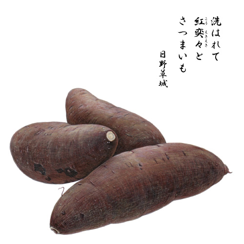 【甘薯】中国・琉球を経て伝わった馴染みのイモ。薩摩でよく作られ、のち救荒作物として奨励もされ、江戸期には東北にまで栽培が広がり、各地でサツマイモと呼ばれるように。蔓を手繰って次次とイモを掘る「甘薯堀(いもほり)」は子供連れなどで楽しむ秋の行楽の一つ。(2026年・歳時記カレンダーより)