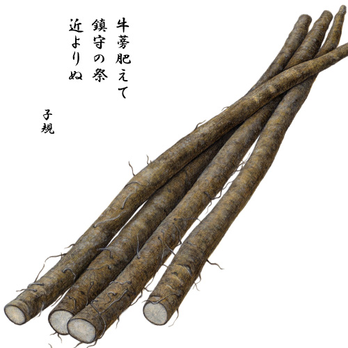 【牛蒡】牛蒡はヨーロッパ・シベリア原産ともいうキク科の根菜で、多く春に種を蒔き晩秋から冬に掘る。滝野川牛蒡は江戸を代表する長根種。短太の下総・大浦牛蒡、京の堀川牛蒡なども。定番は金平炒め。鍋物には笹掻きの牛蒡がよく合う。(2026年・歳時記カレンダーより)